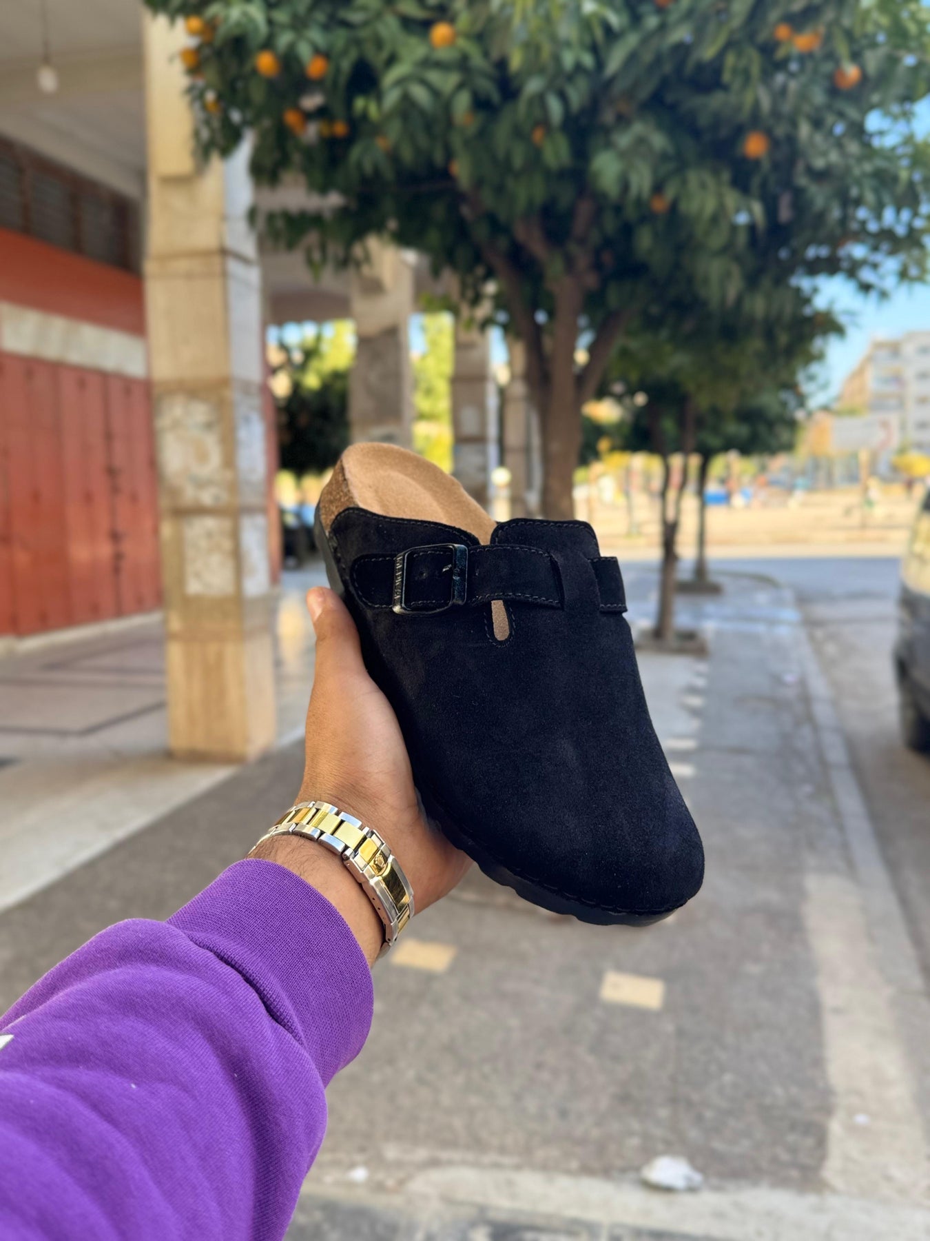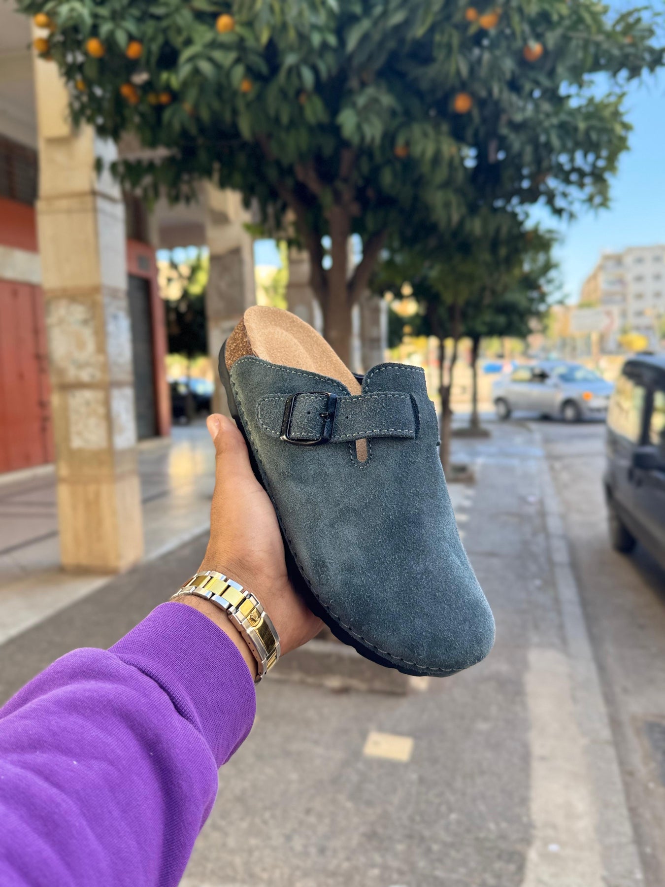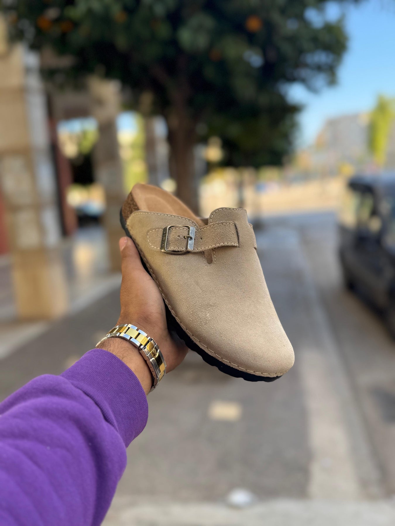 هاد sabot Birkenstock ديال الرجال جاي بتصميم كلاسيكي تاندانس، كيعطي واحد اللوك نقي وساهل يتلبس فالصيف والشتا. السابو معروف بالراحة ديالو، وهاذ الموديل بالخصوص مرطّب من الداخل ببطانة ناعمة كتعطي إحساس ديال الخفّة فالخطوات.