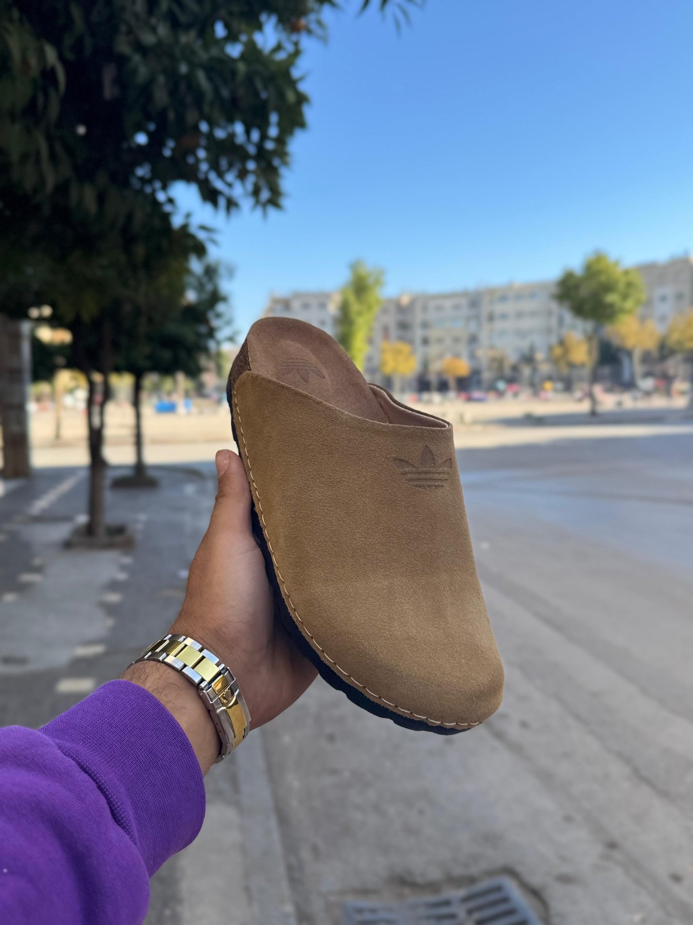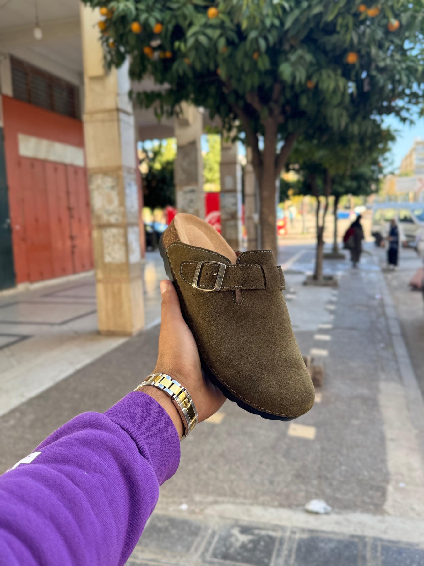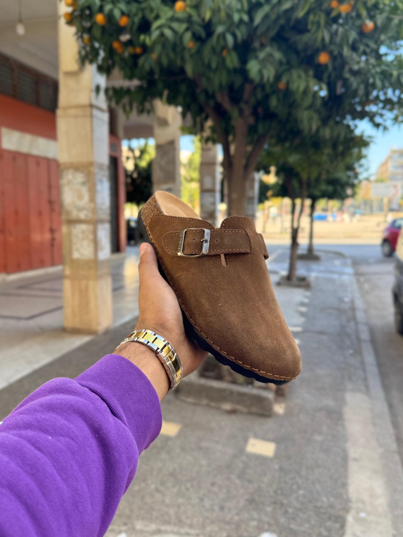 هاد sabot Birkenstock ديال الرجال جاي بتصميم كلاسيكي تاندانس، كيعطي واحد اللوك نقي وساهل يتلبس فالصيف والشتا. السابو معروف بالراحة ديالو، وهاذ الموديل بالخصوص مرطّب من الداخل ببطانة ناعمة كتعطي إحساس ديال الخفّة فالخطوات.